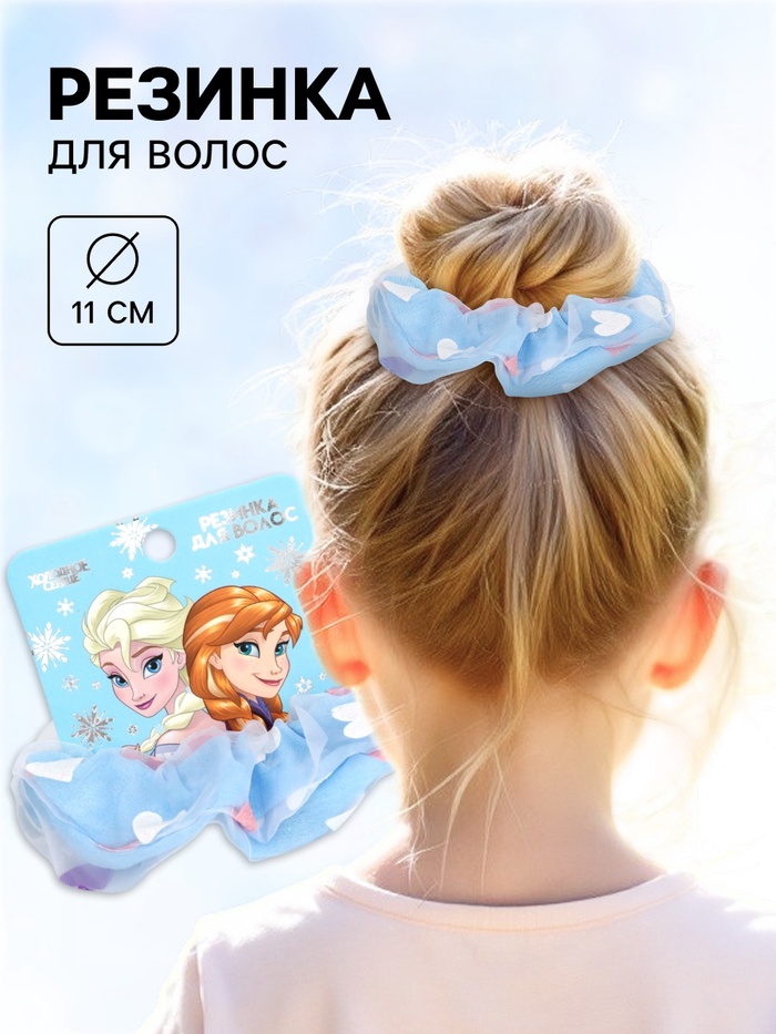 Резинка для волос «Сердечки», голубой, 11 см, Холодное сердце