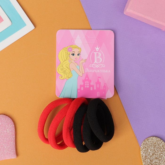 Резинки для волос «Махрушка», набор 6 шт., 3.5 см, чёрные, красные