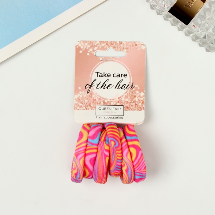 Резинки для волос «Лина», набор 6 шт., абстракция, 4 см, розовые
