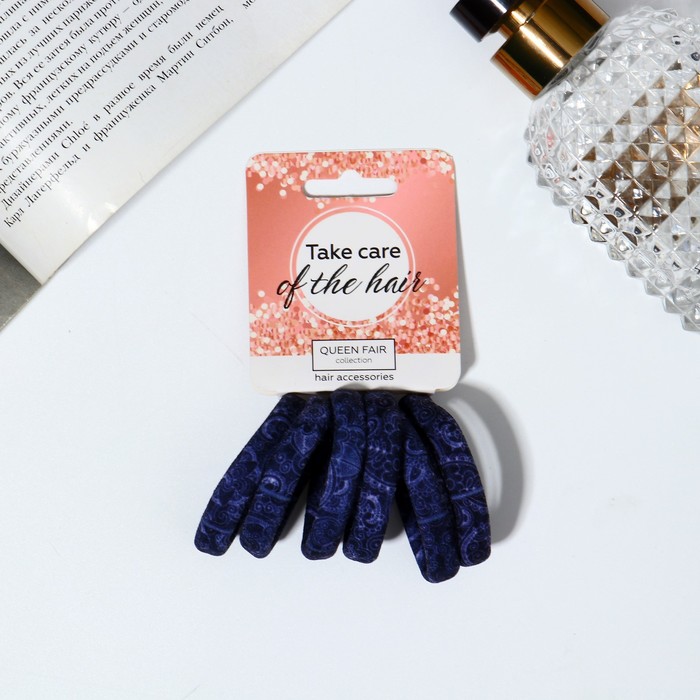 Резинки для волос «Лина», набор 6 шт., цветочный узор, 4 см, синие