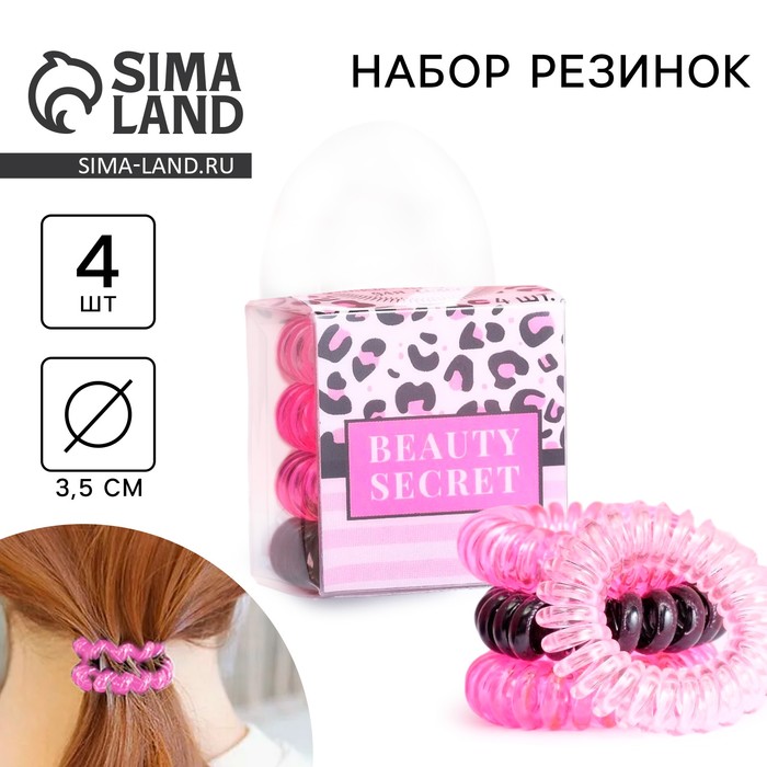 Резинки для волос пружинки «Beauty secret» 4 шт, диам 3,5 см