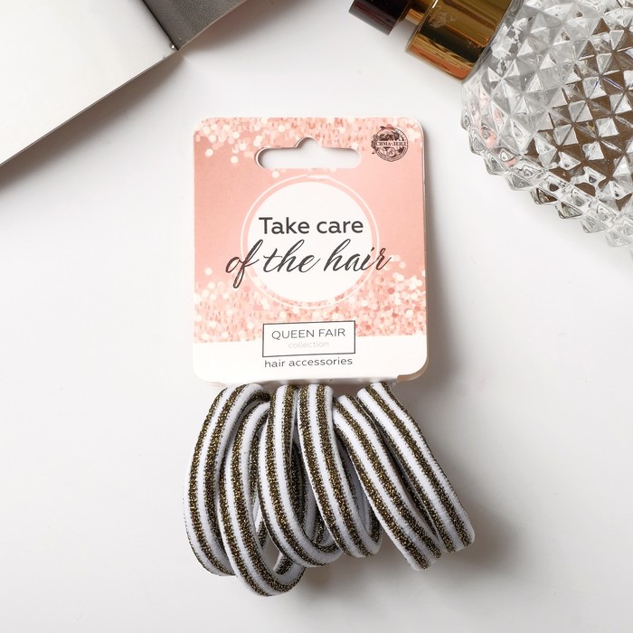 Резинки для волос «Спорт элит», набор 6 шт., полоса, 4 см, золотисто-белые