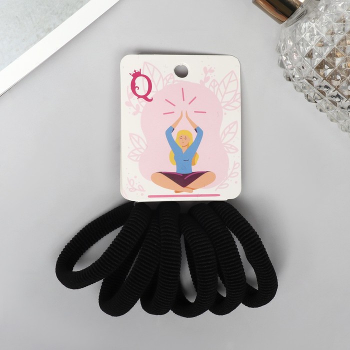 Резинка для волос "Вероника" (набор 6 шт) йога, 4 см, чёрный