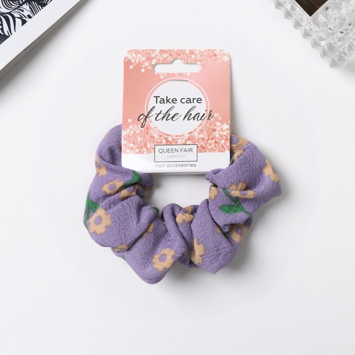 Резинка для волос «Орбита», цветы лето, 10 см, жёлто-сиреневая
