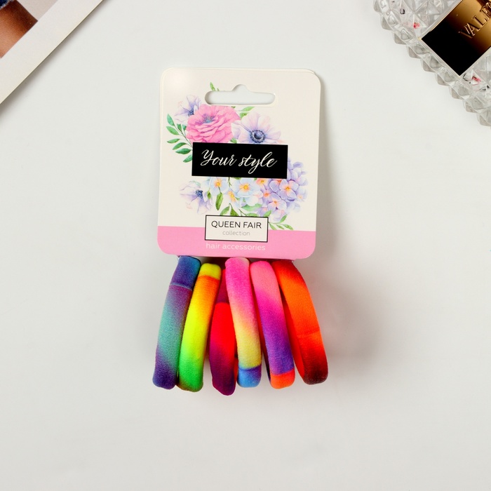 Резинки для волос «Пятнистый орнамент», набор 6 шт., радуга