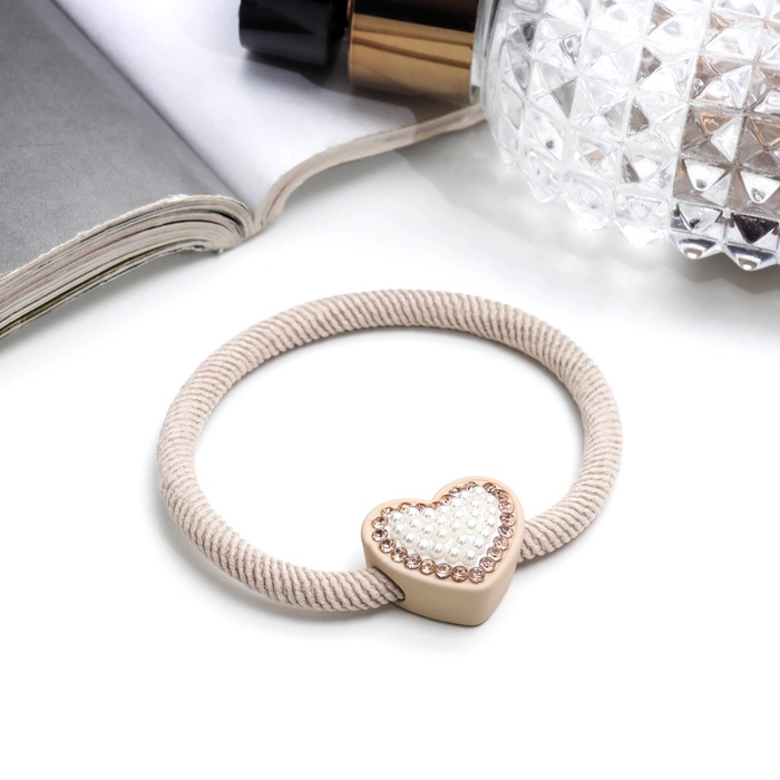 Резинка для волос «Бирсен», сердце, 5 см, бежевый