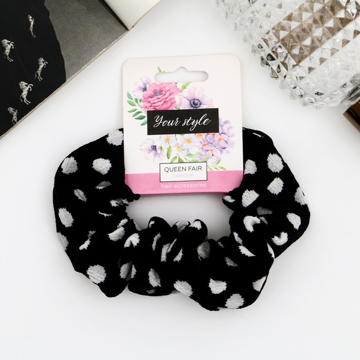 Резинка для волос «Орбита», пятнышки стиль, 12 см, чёрно-белая