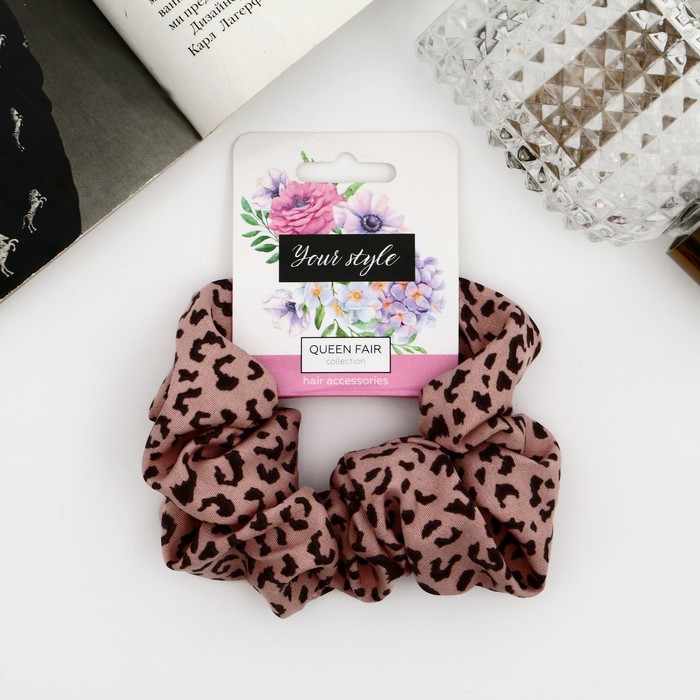 Резинка для волос «Орбита», орнамент пятна, 10 см, коричневая