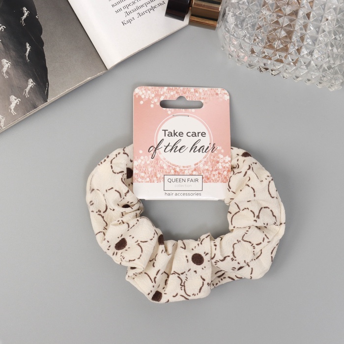 Резинка для волос «Орбита», цветы стиль, 10 см, коричнево-бежевая