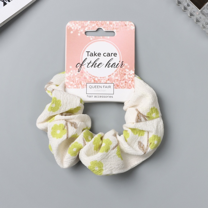 Резинка для волос «Орбита», цветы лето, 10 см, зелёно-белая