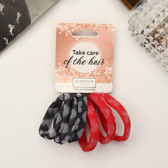 Резинка для волос "Махрушка спорт" (набор 6 шт) сердца, 4 см, серый красный