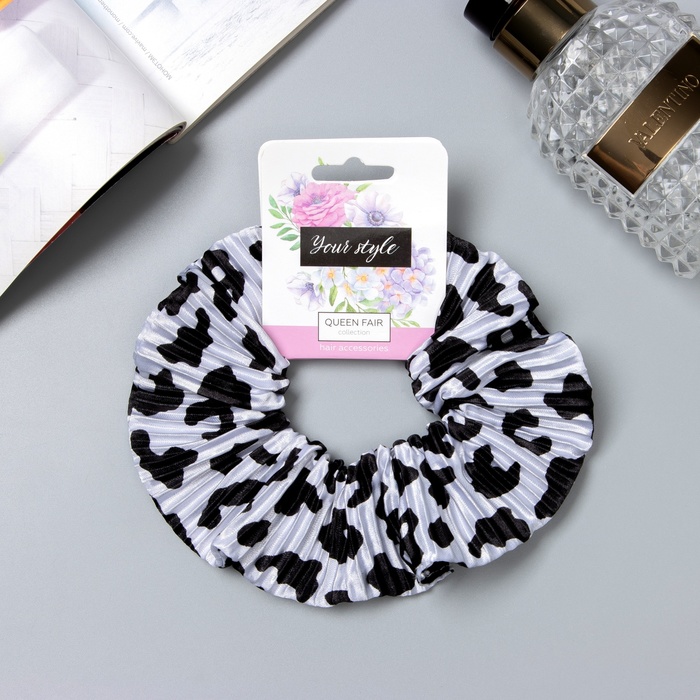 Резинка для волос "Орбита" жатка пятна, 12 см, чёрно-белый