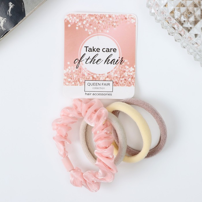 Резинка для волос «Аделин», набор 4 шт., пастель, 4 см