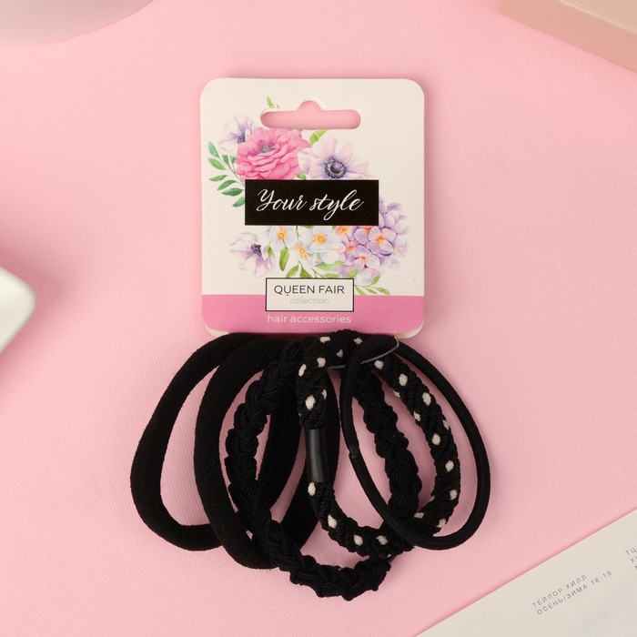Резинки для волос «Вивьен», набор 6 шт., тайна, 4 см, чёрная