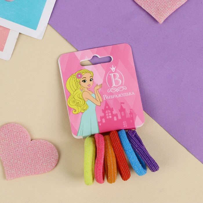 Резинка для волос "Махрушка" (набор 6 шт) спорт блеск колор, 3 см
