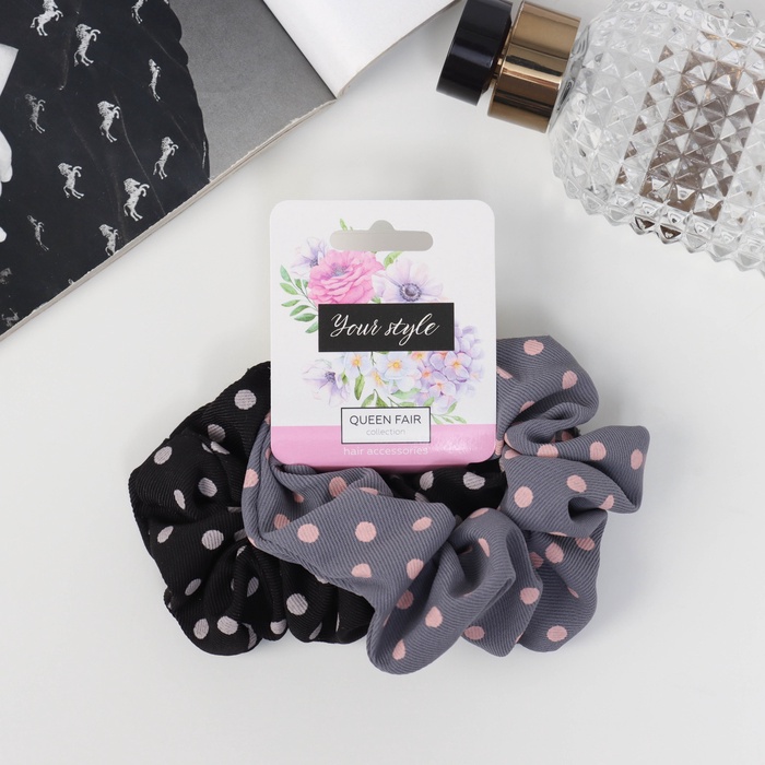 Резинка для волос "Орбита" (набор 2 шт) Ариадна горох колор, 10 см, чёрный серый