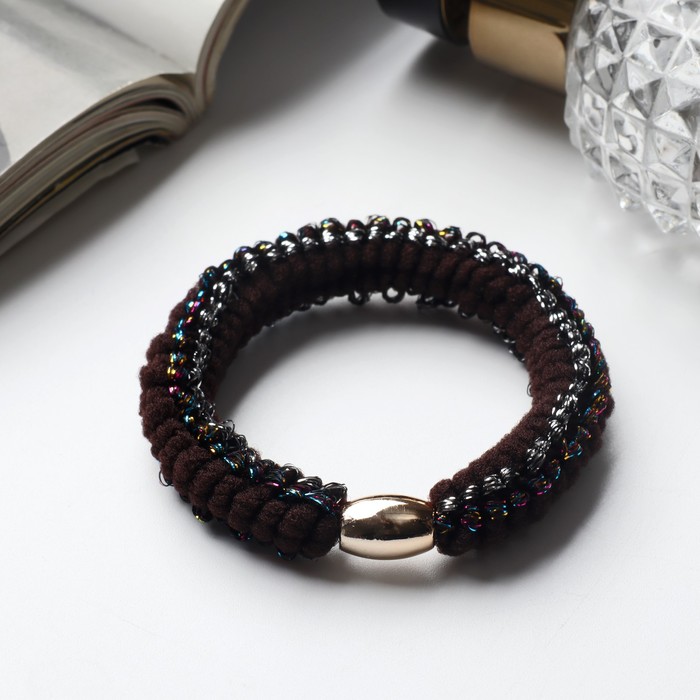 Резинка для волос «Спорт», классика полоса блеск, 5 см, коричневая
