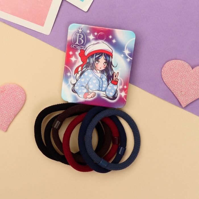 Резинки для волос «Комиксы», набор 6 шт., девчонка шляпка, 5.5 см