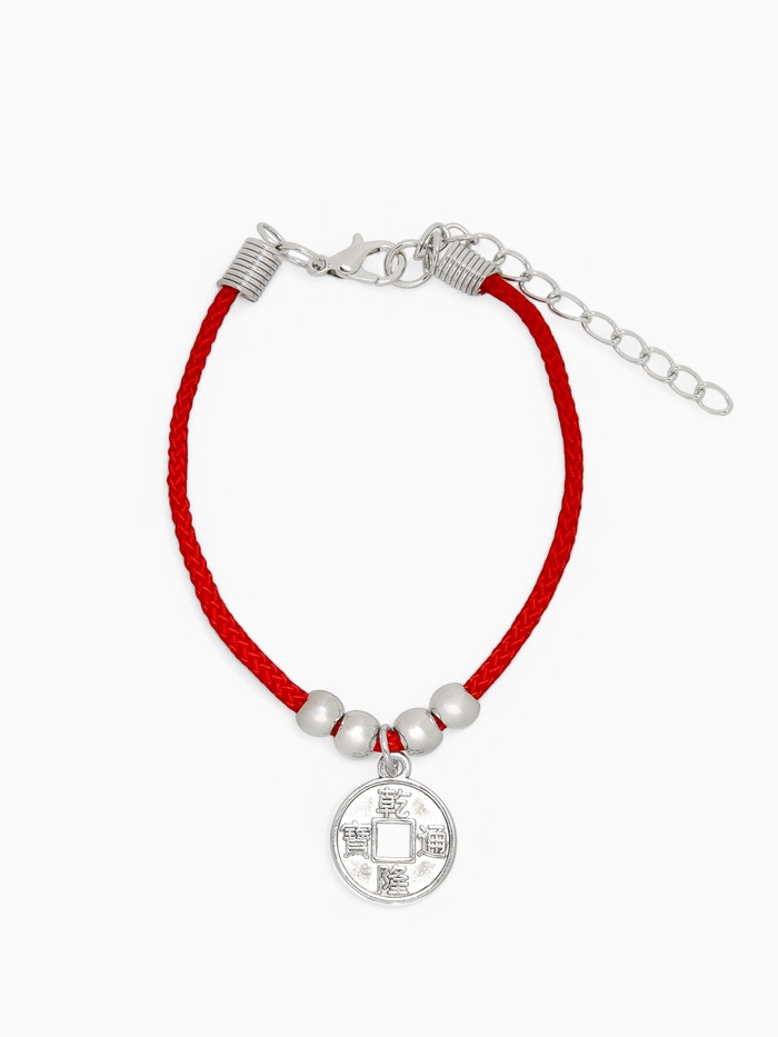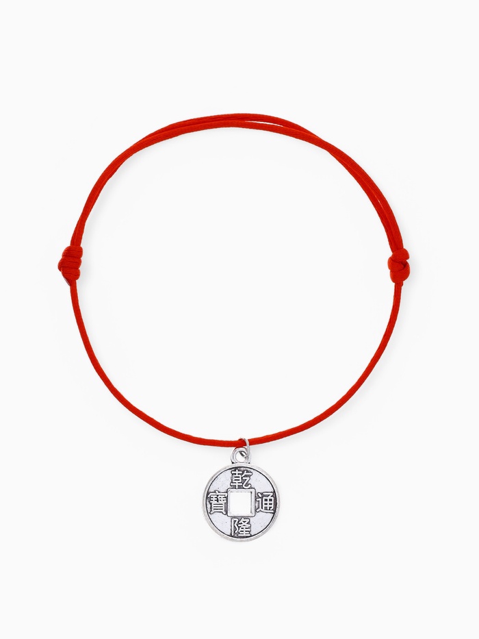 Браслет-оберег «Красная нить» на богатство, монетка, цвет серебро, 35см