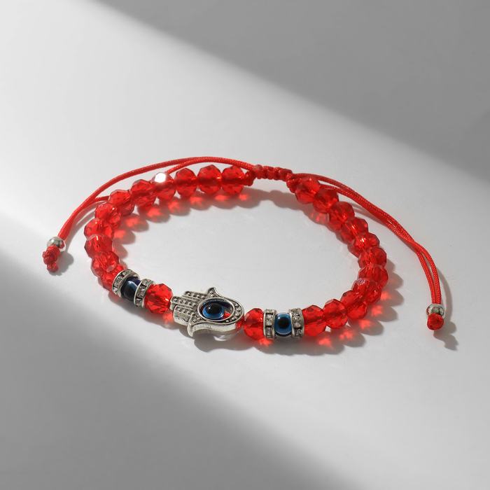 Браслет-оберег «Красная нить» рука счастья Хамса, хрусталики, синий в чернёном серебре, d=8 см