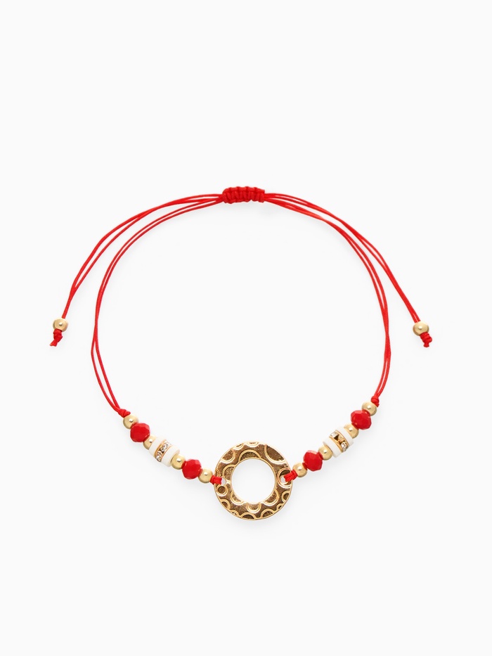 Браслет-оберег «Красная нить» женский, защита, кольцо, бело-красный в золоте, d=6