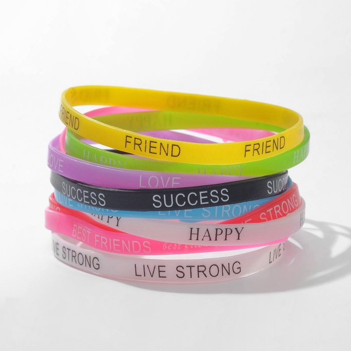 Силиконовый браслет «Классика», набор 10 шт., МИКС, 6.5 см
