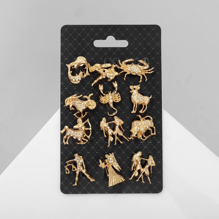 Брошь «Знаки зодиака» ассорти, гороскоп, цвет белый в золоте (неделимая фасовка 12 шт., цена за шт.)