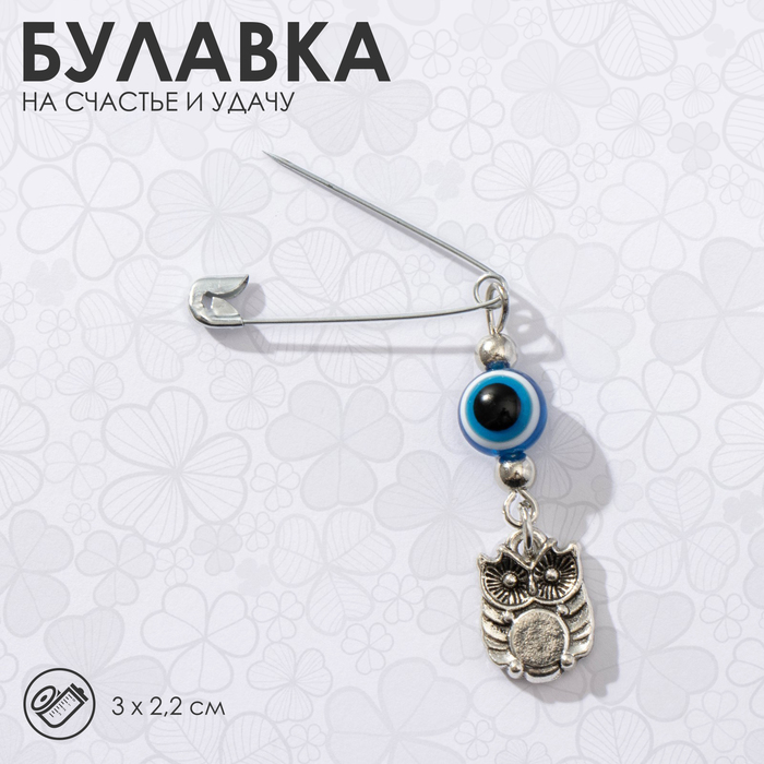 Булавка-оберег «На счастье и удачу», 2.2 см, синяя в серебре