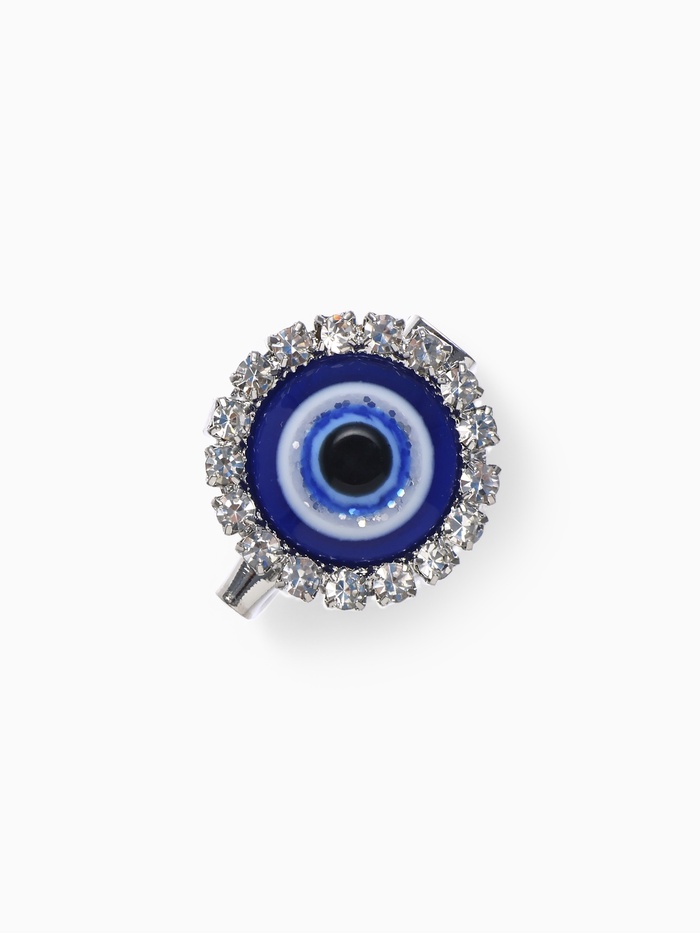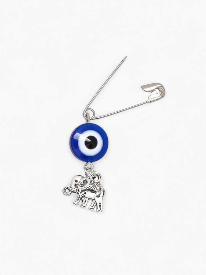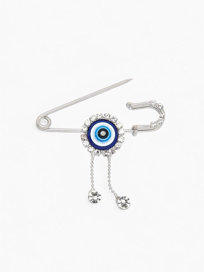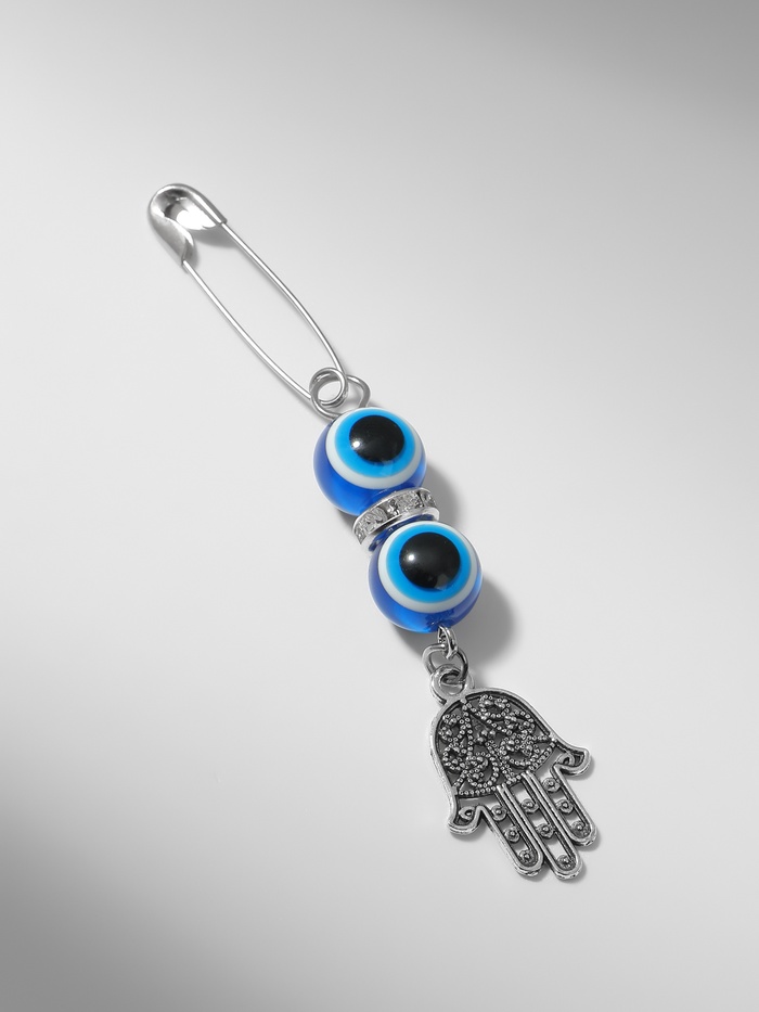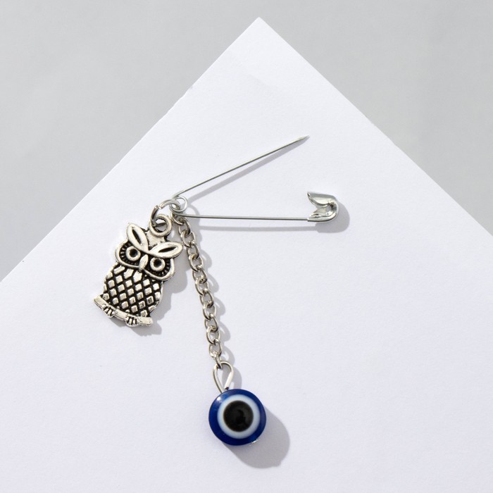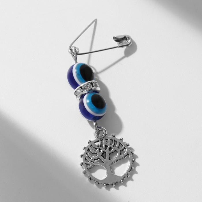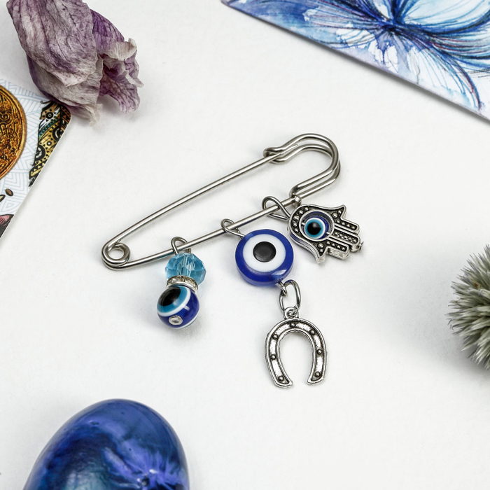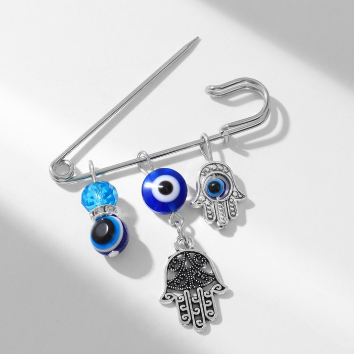 Булавка-оберег «От сглаза» глаз с подвесками, 5 см, бело-синяя в серебре