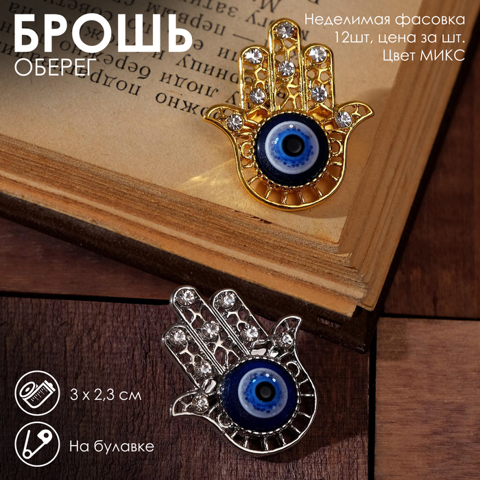 Брошь-оберег «Рука Хамса», МИКС, (неделимая фасовка 12 шт., цена за шт.)