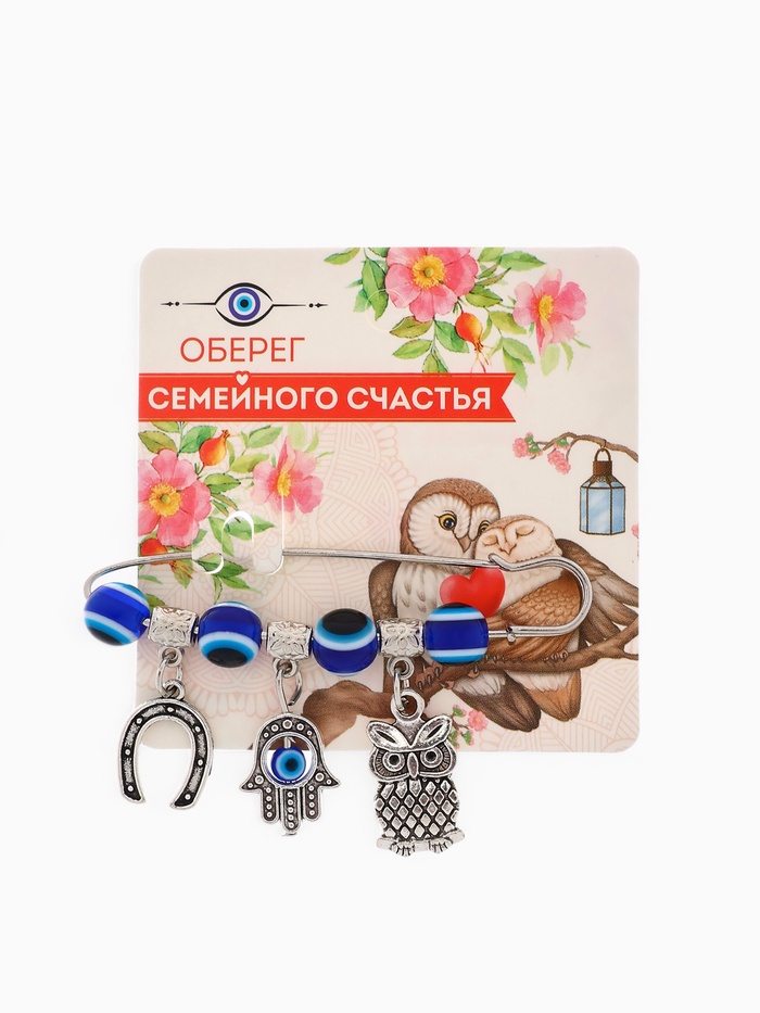 Булавка-оберег «От сглаза» 6 см, бело-синяя в серебре