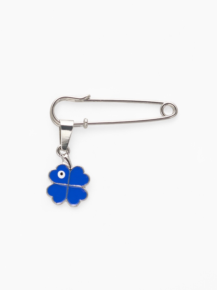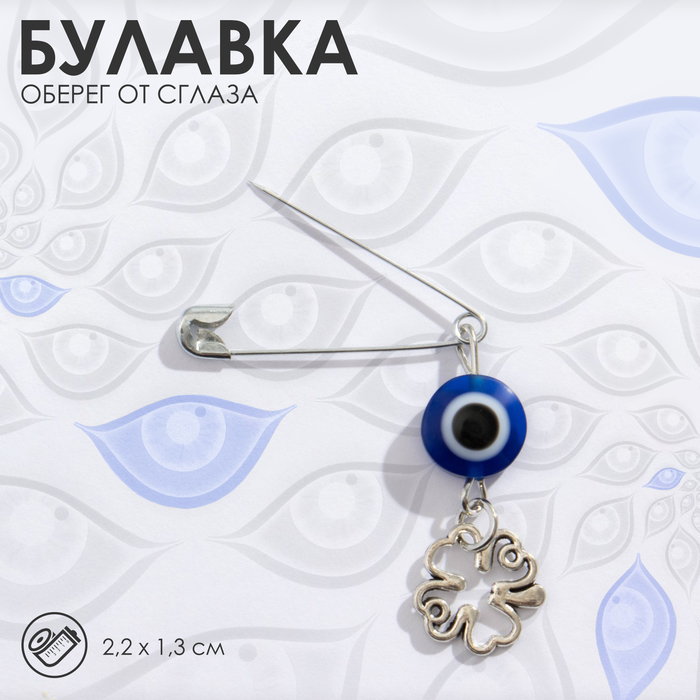 Булавка-оберег «Клевер» с глазком, 3.5 см, синяя в серебре