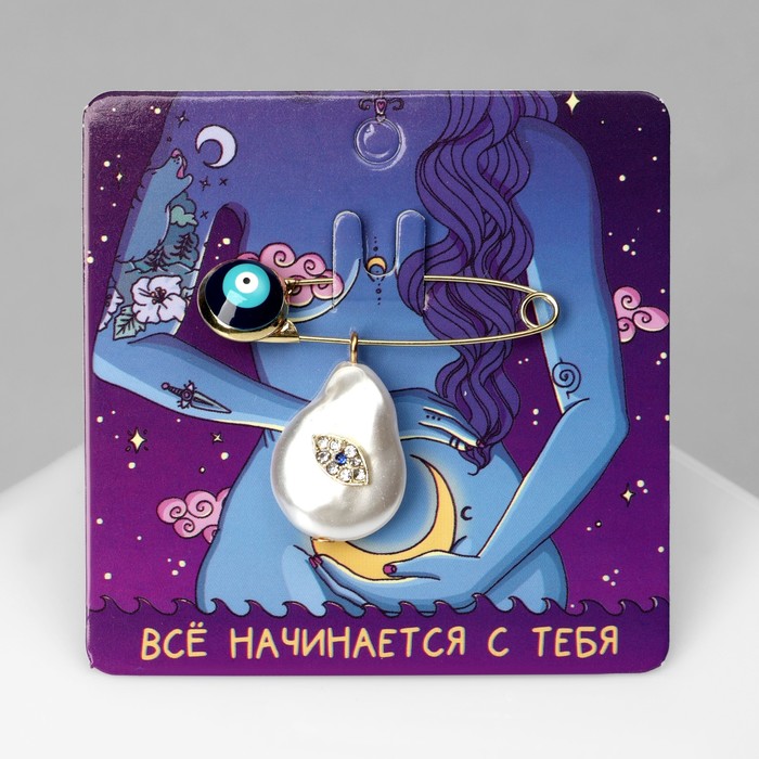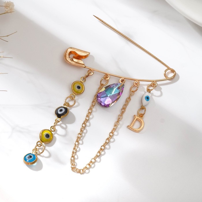 Булавка-оберег «Глазки» с подвесками, 5 см, цветная в золоте