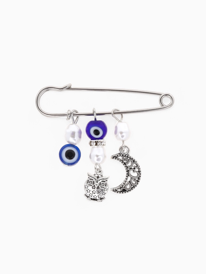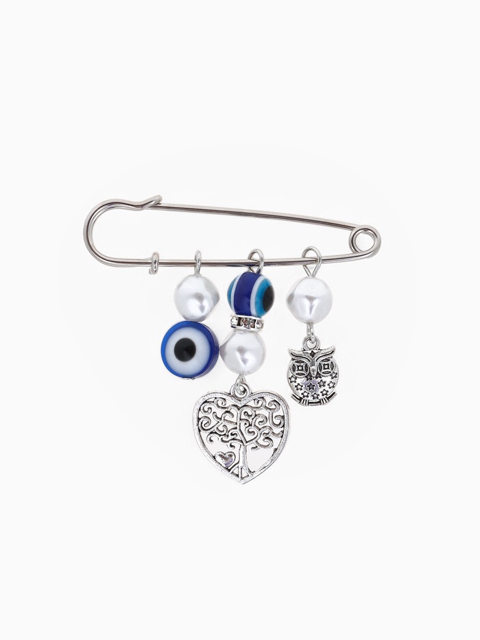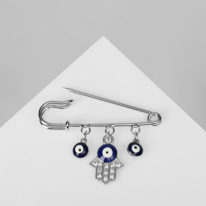 Булавка-оберег «От дурного глаза», бело-синяя в серебре