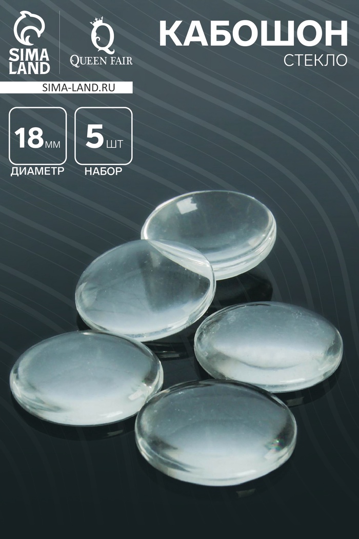 Кабошон стекло, круг 18 мм (набор 5 шт.), цвет прозрачный