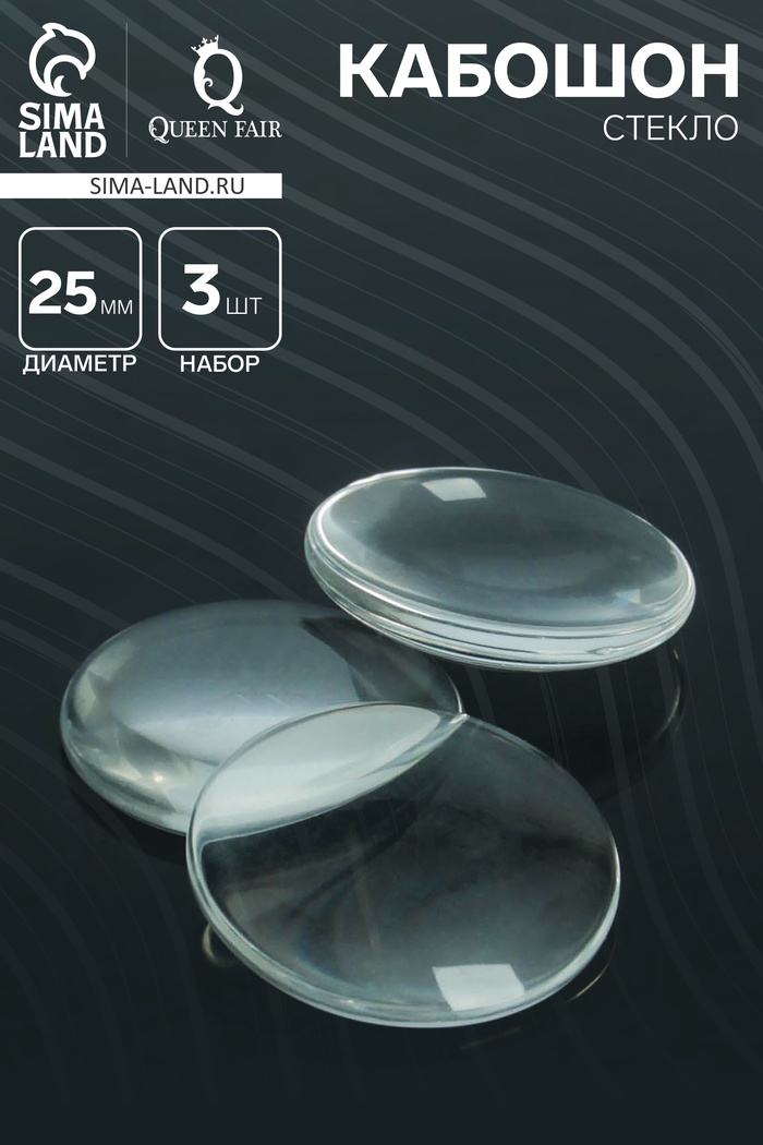 Кабошон стекло, круг 25 мм (набор 3 шт.), цвет прозрачный
