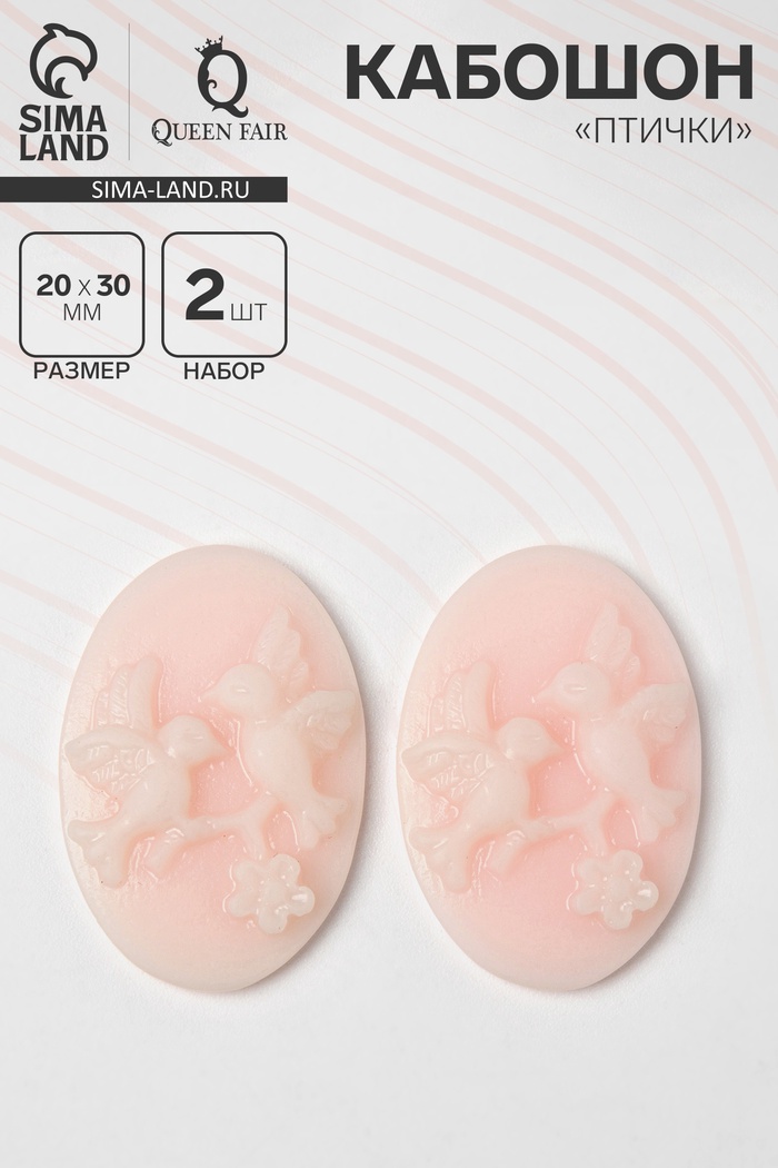 Кабошон «Птички» овал (набор 2 шт.) 20×30 мм, цвет розовый