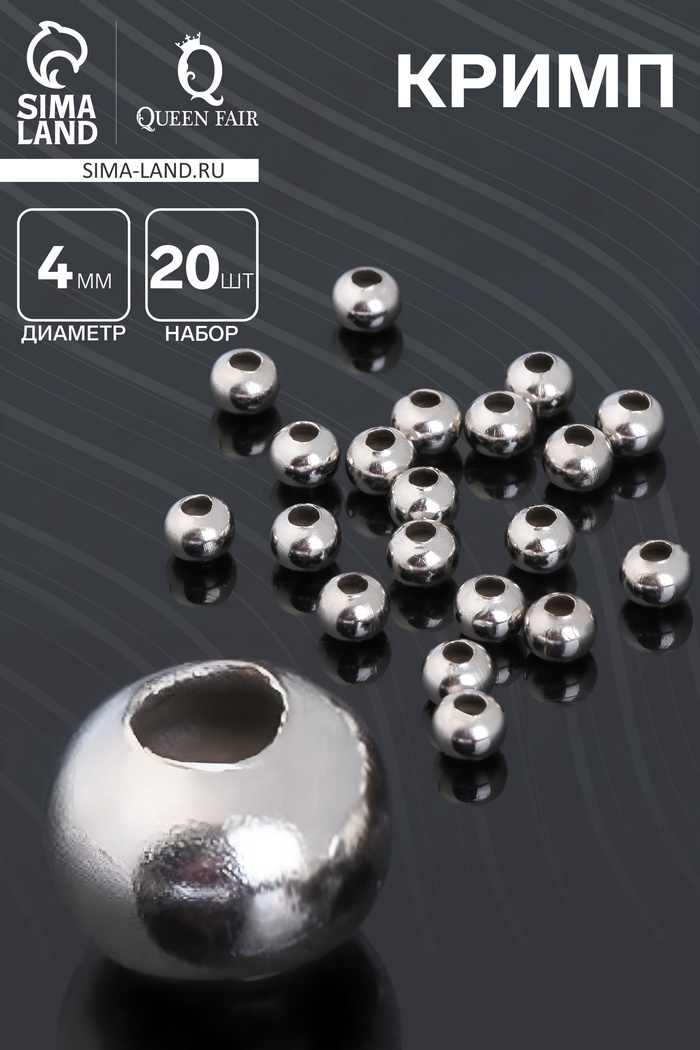 Кримп - зажимная бусина, 4 мм, набор 20 шт. цвет серебро