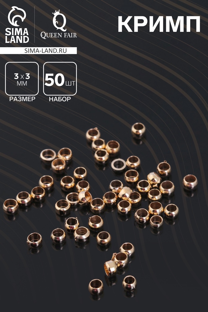 Кримп - зажимная бусина СМ-355, набор 50 шт. 3 мм, цвет золото