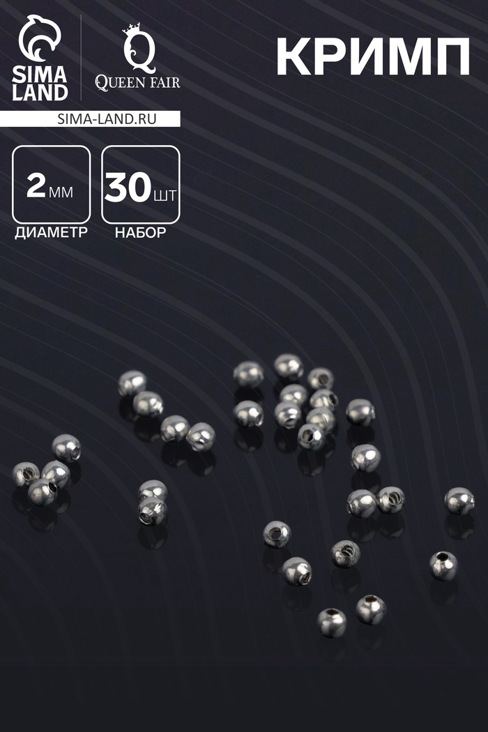 Кримп - зажимная бусина СМ-368, набор 30 шт. 2 мм, цвет серебро