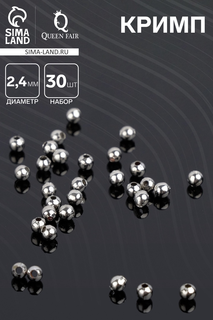 Кримп - зажимная бусина СМ-369, набор 30 шт. 2.4 мм, цвет серебро