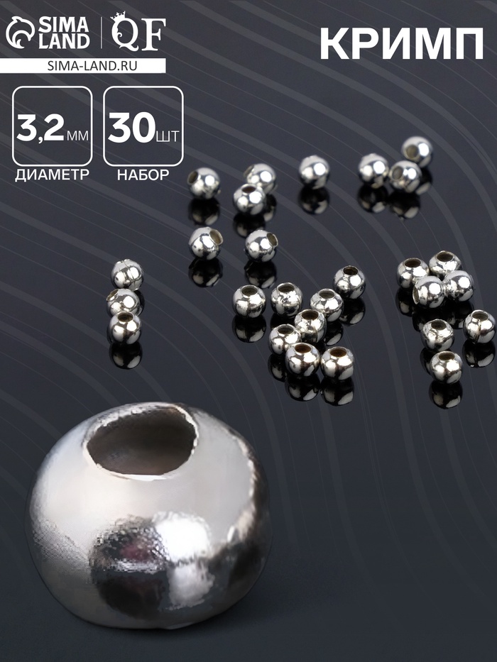 Кримп - зажимная бусина СМ-370, набор 30 шт. 3.2 мм, цвет серебро