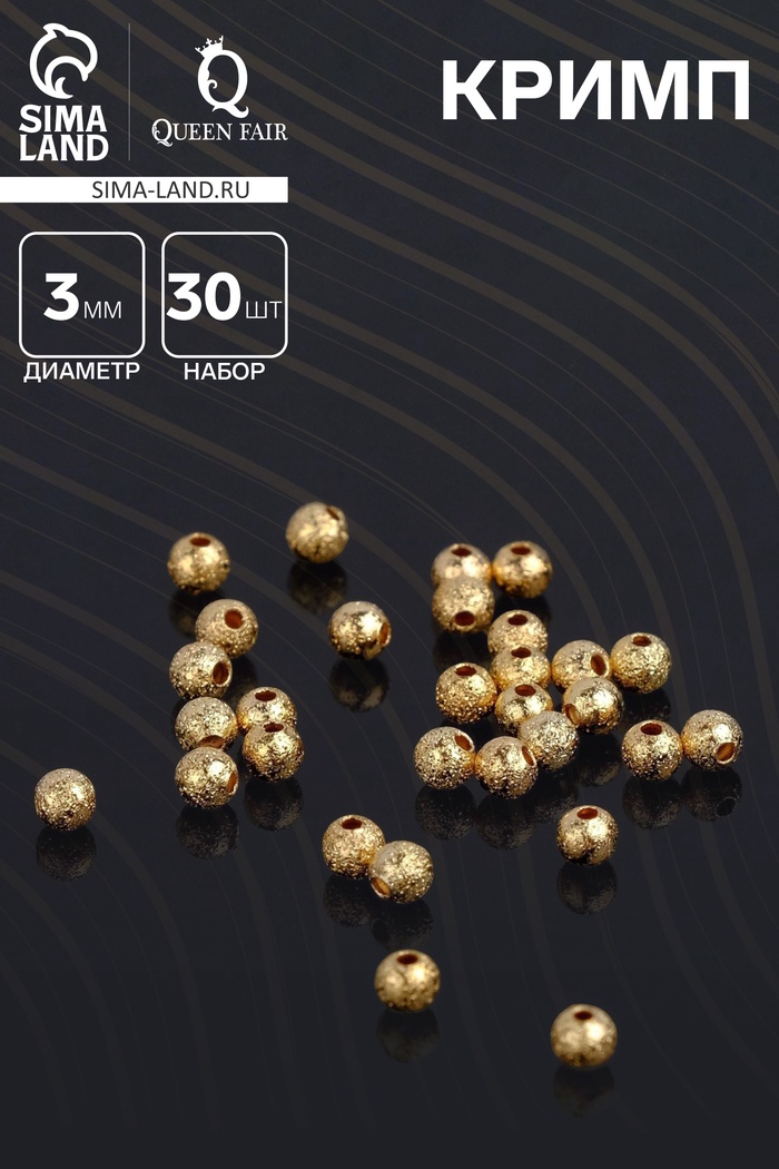 Кримп - зажимная бусина СМ-434, набор 30 шт. 3 мм, цвет золото