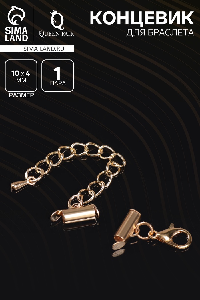 Концевик для браслета из бисера (пара) QF, 10 мм, металл, с цепочкой удлинителем, цвет золото