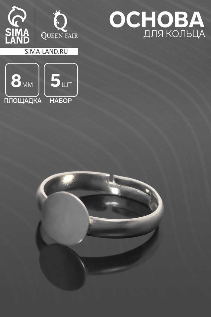 Основа для кольца регулируемая, безразмерная с платформой (набор 5 шт.), 8 мм, цвет серебро