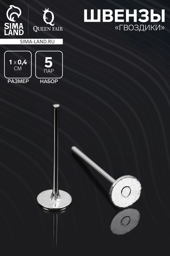 Швензы «Гвоздики» для изготовления пусет, 4 мм (набор 5пар), цвет серебро