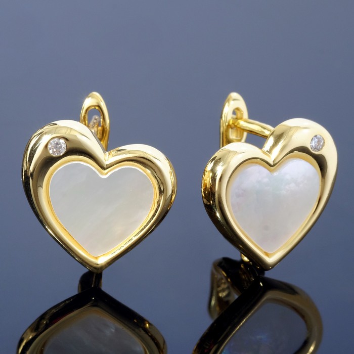 Швензы родированные «Перламутр» сердце, белые в золоте