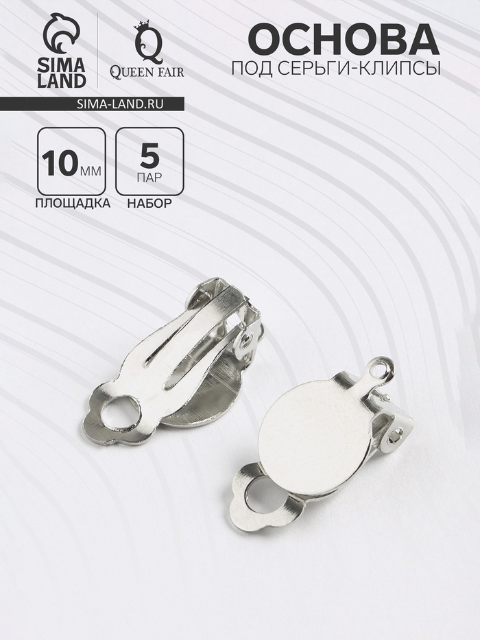 Основа под серьги-клипсы, 10 мм (набор 5 пар), цвет серебро