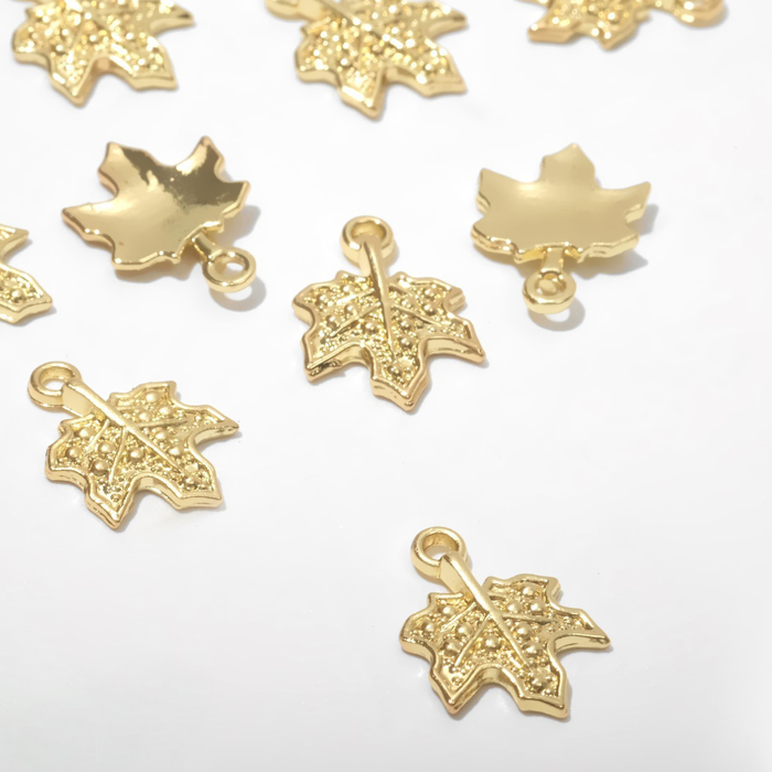 Подвеска «Лист» кленовый, набор 10шт, цвет золото