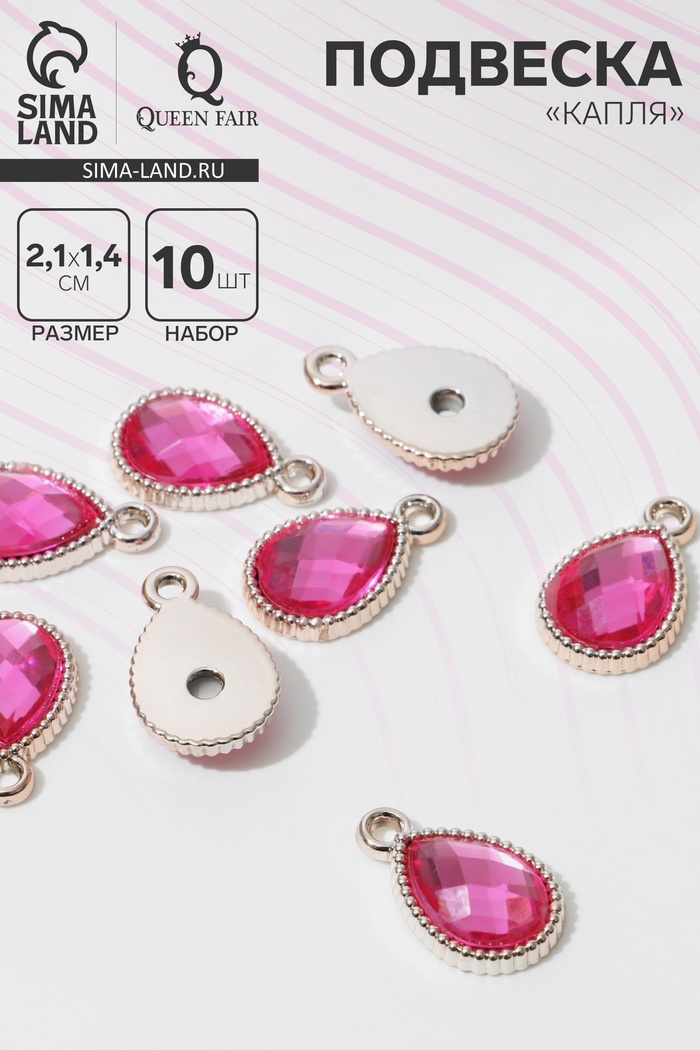 Подвеска «Капля» рифлёная 2,1×1,4×0,4 см,(набор 10 шт.), цвет ярко-розовый в золоте
